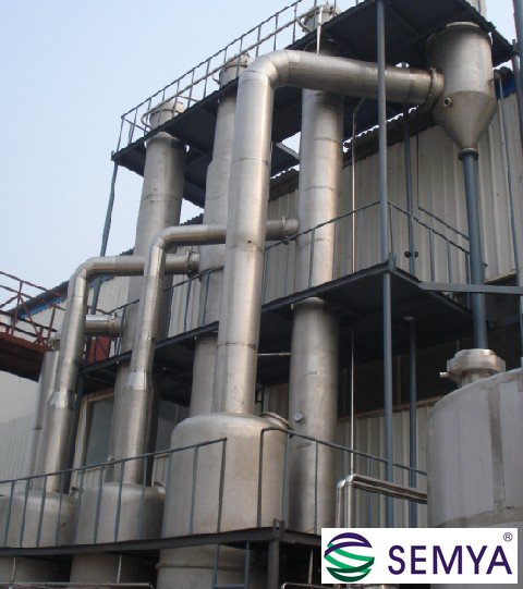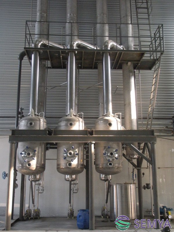 采用降膜蒸發(fā)裝置,將果汁中的水份進行蒸發(fā)分離,冷凝水(即軟水)作為紅棗清洗用水或二榨萃取用水、超濾提糖用水,使果汁濃縮,糖度由9~18BX濃縮至70.3±0.2BRIX.