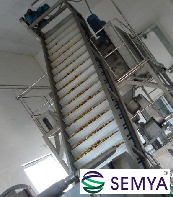 用一級螺旋提升機將紅棗提升至揀選臺。通過調(diào)節(jié)提升機變速箱調(diào)節(jié)原料進料量,以保證生產(chǎn)需要。