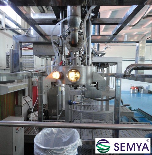 該工序采用FBR無菌灌裝機,濃縮果汁經(jīng)管道輸送至無菌灌裝機,利用灌裝機灌裝頭腔室溫度≥95℃的滅菌條件將果汁灌入無菌袋中(外圍為保護袋和鋼桶),灌裝重量通過質(zhì)量流量計來控制。